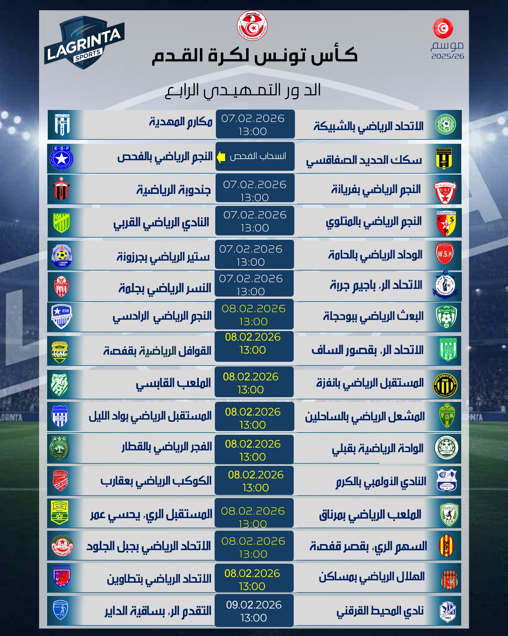 📅 06 فيفري و 08 فيفري 2026LAGRINTA SPORTS News a publié une note