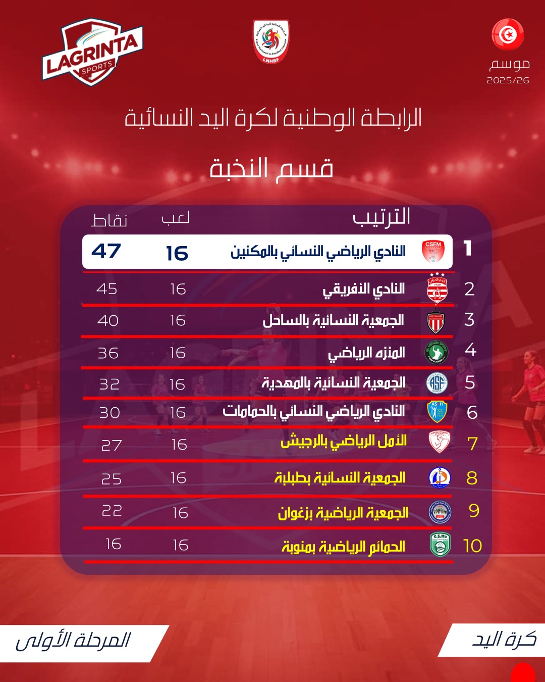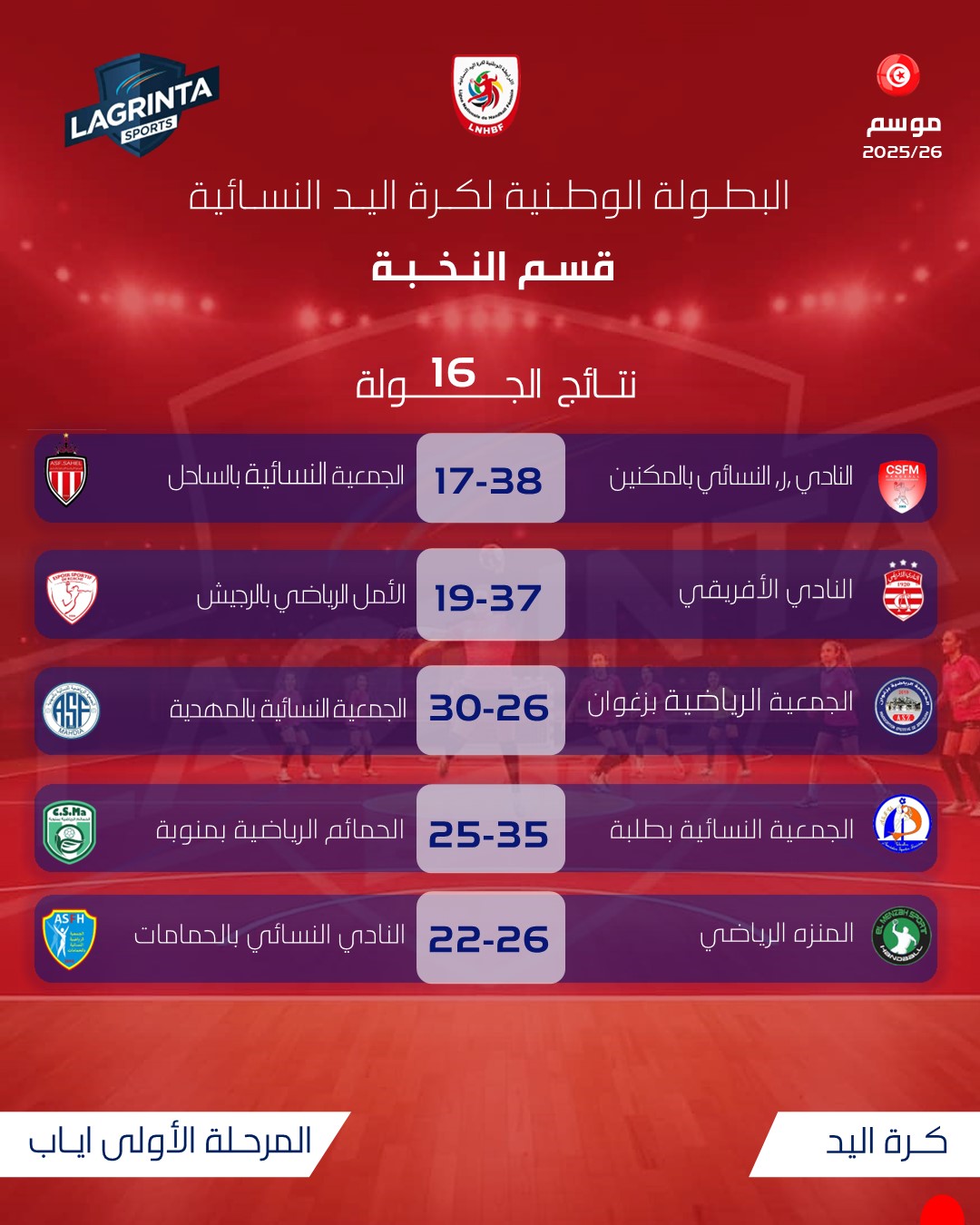 il y a 14 heures et 50 minutes🤾♀️البطولة الوطنية لكرة اليد النسائية 2025/2026 🇹🇳