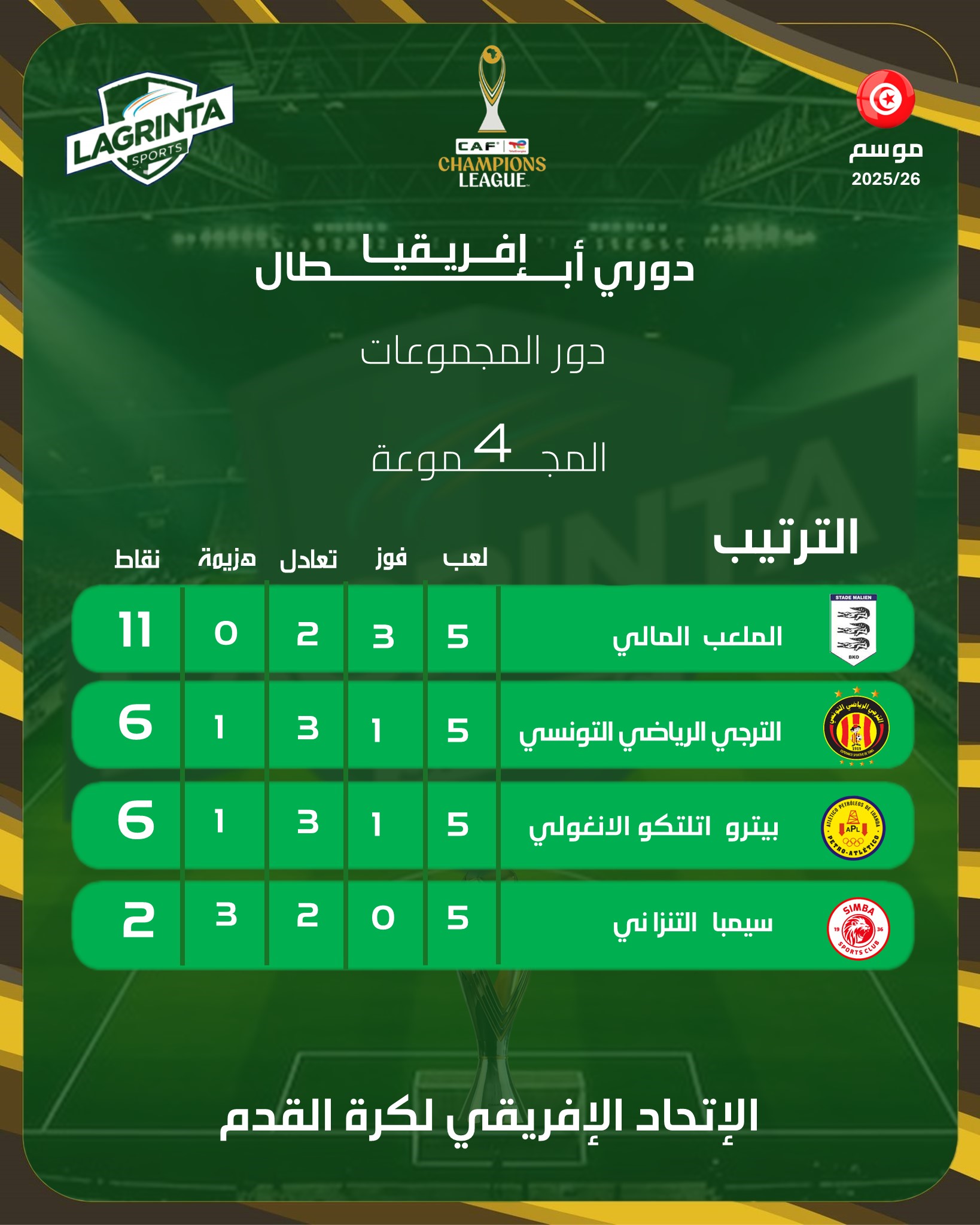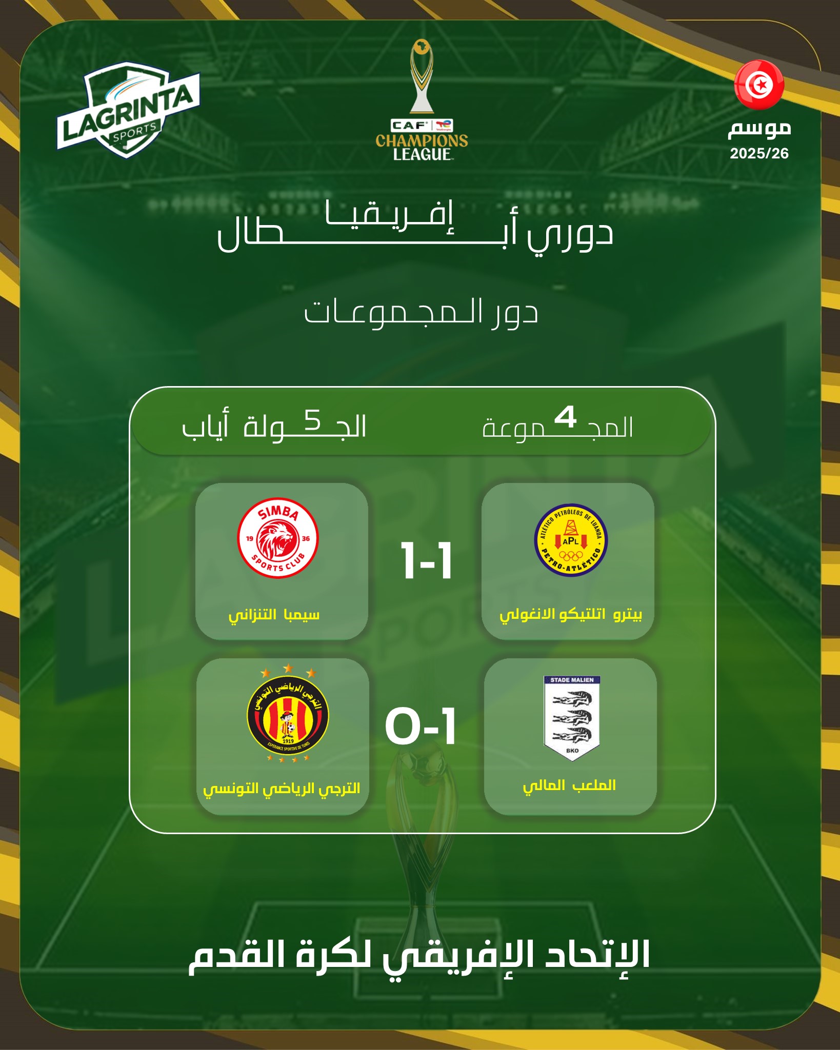 الإطار: الجولة الخامسة من دور مجموعات رابطة الأبطال الأفريقية 🏆