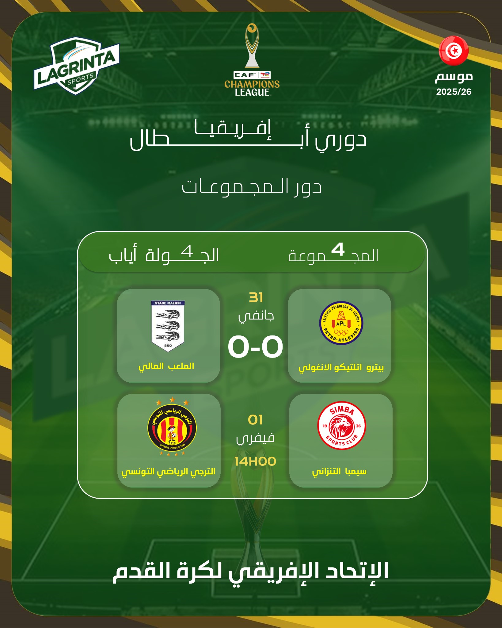 📅 31 جانفي 2026LAGRINTA SPORTS News a publié une note